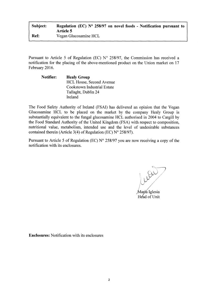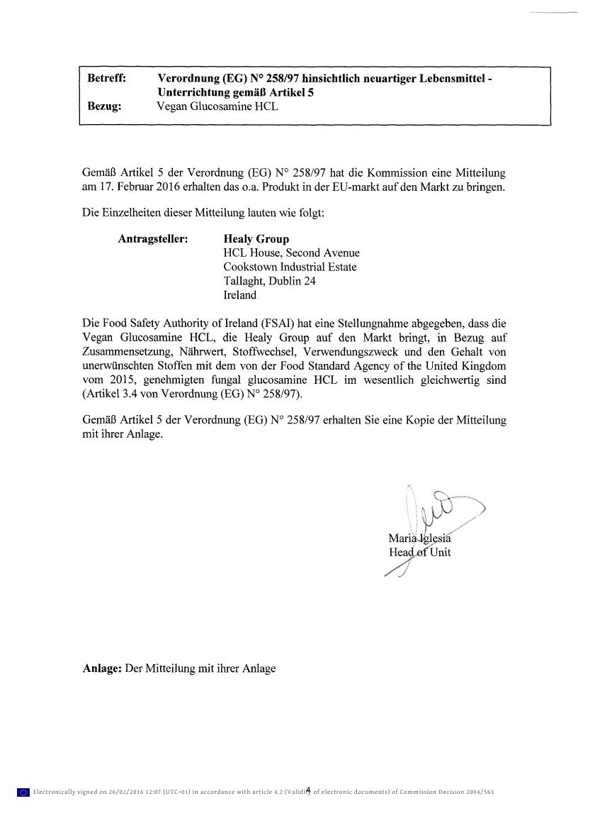 近日,南通医保成功拿到欧洲新食品认证证书,证书编号:(2016)1021053-29/02/2016。其中Healy Group为南通医保在欧洲素食葡萄糖胺的代理,负责我司在欧洲市场的开发与销售。